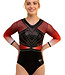 Leotard Eclipse is a unique leotard made from a combination of high-quality fabrics. The lower part is crafted from lycra mystique, while the sections at the waist, upper body, and sleeves are made of mesh. The lenght of the sleeves is 3/4. This leotard features a V-neckline at the front, while the back has a high neckline with a closure for a sophisticated finish. It is beautifully decorated with KV Crystals in Crystal AB and red. Do you have any questions about this design? Feel free to call or email us!
