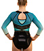 Leotard Eclipse is a unique leotard made from a combination of high-quality fabrics. The lower part is crafted from lycra mystique, while the sections at the waist, upper body, and sleeves are made of mesh. The lenght of the sleeves is 3/4. This leotard features a V-neckline at the front, while the back has a high neckline with a closure for a sophisticated finish. It is beautifully decorated with KV Crystals in Crystal AB and green/blue. Do you have any questions about this design? Feel free to call or email us!