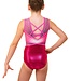De onderkant van dit turnpakje is gemaakt van rood/rozelycra mystique, het middenstuk van geprinte lycra en d