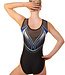 Turnpakje Joy is een mooi turnpakje gemaakt van geprinte lycra en zwarte gaasstof. Het ontwerp van dit turnpakje laat de gymnast langer ogen en zorgt voor een elegante uitstraling. Een turnpakje met hoog draagcomfort, perfect voor tijdens de trainingen! Versierd met ruim 1000 crystals van de aller beste kwaliteit. Hiermee ga jij zeker shinen!